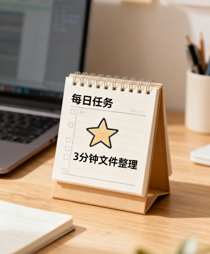 整理不是一次性的项目,而是一个习惯。维持整洁比彻底整理一次更重要: 固定存放: 所有新下载的文件,第一时间存进05-临时下载区。 每日清空: 每天下班前,花3分钟处理“临时下载区”和桌面(如果又有了东西),将它们归位到该去的地方。定期回顾: 每季度抽15分钟,回顾一下整个系统,合并或删除过时的项目文件夹。