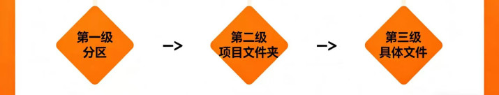 第二级:项目或领域文件夹。 在每个分区内再细分。